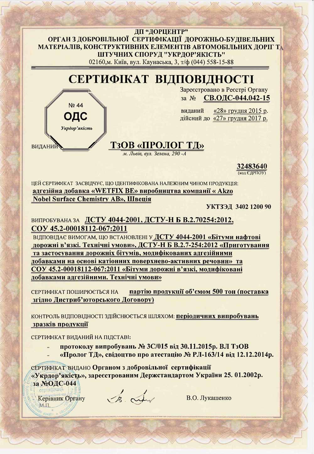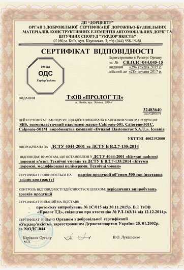 На сьогодні освоєно виробництво бітумної емульсії різних типів на устаткуванні компанії MARINI (Італія), продуктивністю - 6 т/год.
